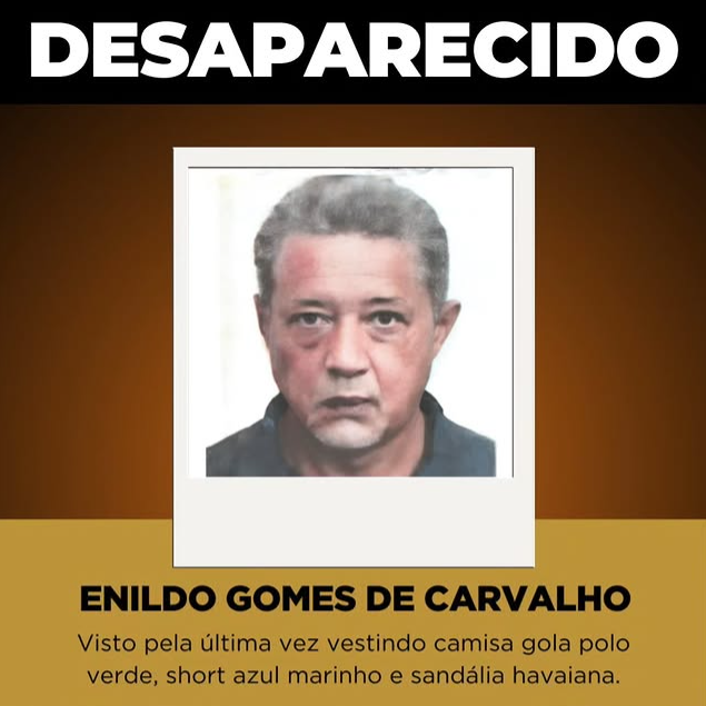 A colaboração da população é essencial neste momento. Qualquer informação que possa contribuir para a localização de ENILDO GOMES DE CARVALHO será tratada com absoluto sigilo.