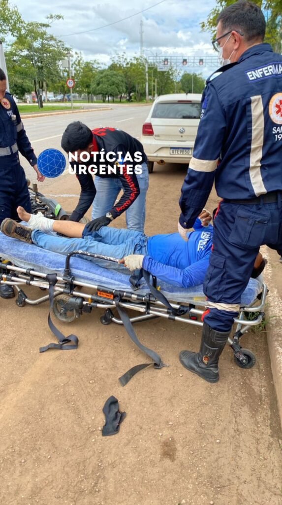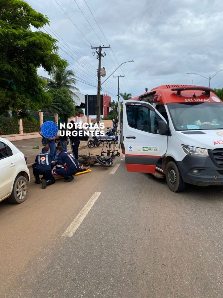 O piloto da moto sofreu uma fratura exposta na perna, enquanto a passageira ficou desacordada no chão. Populares acionaram a Polícia Militar e equipes de resgate.
