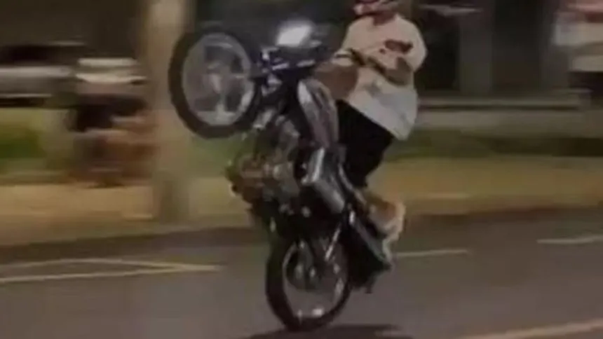 Um vídeo que circulou como prova em um processo judicial mostrou o momento em que um motociclista realizava a manobra conhecida como “grau”, trafegando com a roda dianteira levantada, em Jaru. Durante a exibição, ele perdeu o controle da direção e acabou colidindo contra um veículo que estava estacionado.