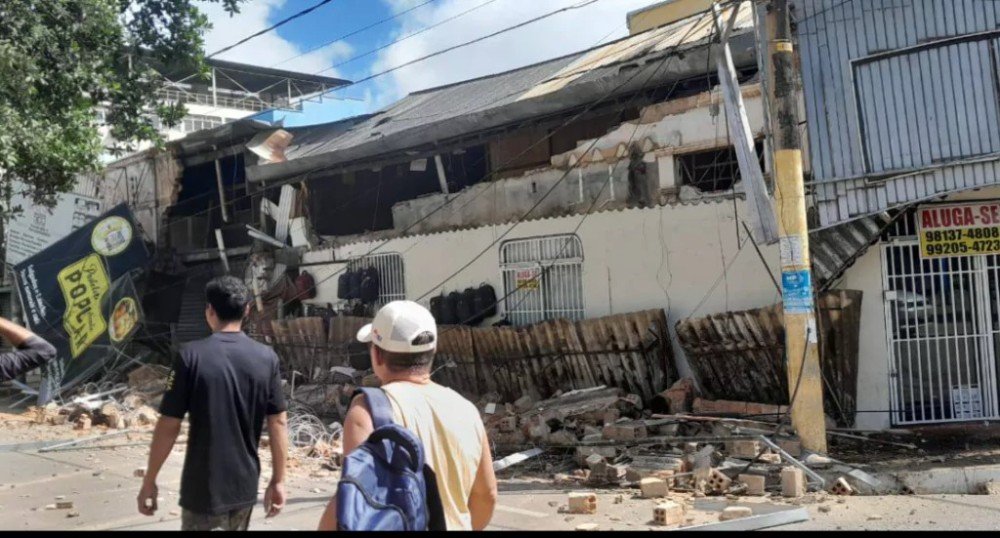 A parte de cima de um prédio desabou na manhã deste domingo (5), entre a avenida Presidente Dutra com Sete de Setembro, centro de Porto Velho. Segundo o Corpo de Bombeiros, ninguém se feriu.