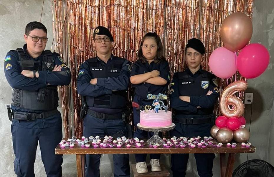 Garotinha faz aniversário com tema “PM” e recebe visita de guarnição