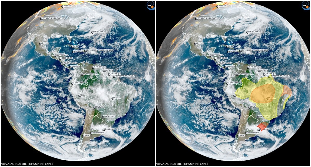 Informações do Inpe e do Centro de Previsão do Tempo e Estudos Climáticos (CPTEC) classificam o cenário como nível 2, indicando tempestades mais organizadas e com potencial para episódios severos. Esse sistema faz parte de um grande corredor de instabilidade que avança pelo sul da Amazônia e já impacta estados como Amazonas, Acre e sudoeste do Mato Grosso. A tendência é que a instabilidade aumente ainda mais na sexta-feira (13), o primeiro dia útil de 2026, com previsão de volumes elevados de chuva, ventos fortes e maior frequência de raios.