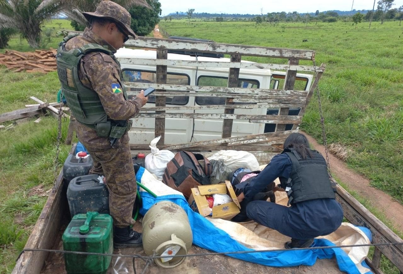 A ação aconteceu por volta das 10 horas, no travessão da Linha 5, km 7, após denúncia encaminhada pelo Ministério Público de Rondônia (MPRO), que indicava a suposta retirada ilegal de madeira na região. As equipes se deslocaram até o local para averiguar a situação.