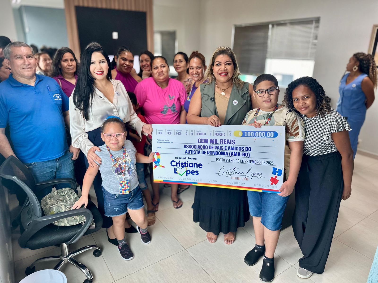 Emoção e esperança marcaram a entrega de uma emenda parlamentar de R$100 mil feita pela deputada federal Cristiane Lopes (União Progressista) à Associação de Pais e Amigos do Autista de Rondônia (AMA-RO).