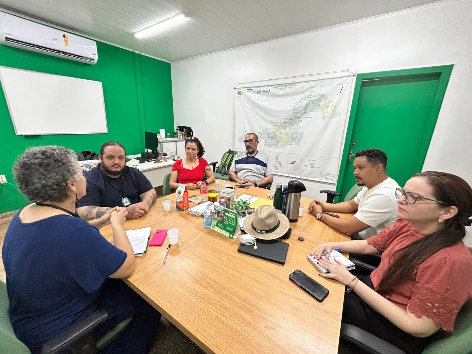 A Prefeitura de Porto Velho, por meio da Secretaria Municipal de Agricultura, Pecuária e Abastecimento (Semagric), promoveu uma reunião estratégica com a Procuradoria-Geral do Município (PGM), a Superintendência Municipal Distrital (SMD) e a Organização Rioterra. O encontro teve como objetivo alinhar um termo de cooperação técnica para integrar esforços das instituições em projetos atuais e futuros voltados ao fortalecimento da agricultura sustentável no município.
