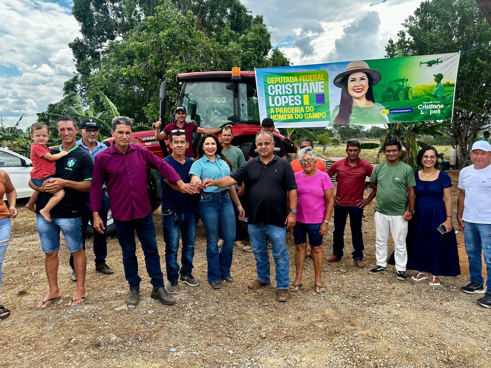A deputada federal Cristiane Lopes (União Brasil) realizou, neste fim de semana, a entrega oficial de um trator agrícola cabinado, no valor de R$ 400 mil, destinado à Associação de Pequenos Produtores Rurais da Comunidade Santa Rita de Cássia (ASPROCOSRICA), localizada na linha C-10, em Campo Novo de Rondônia.