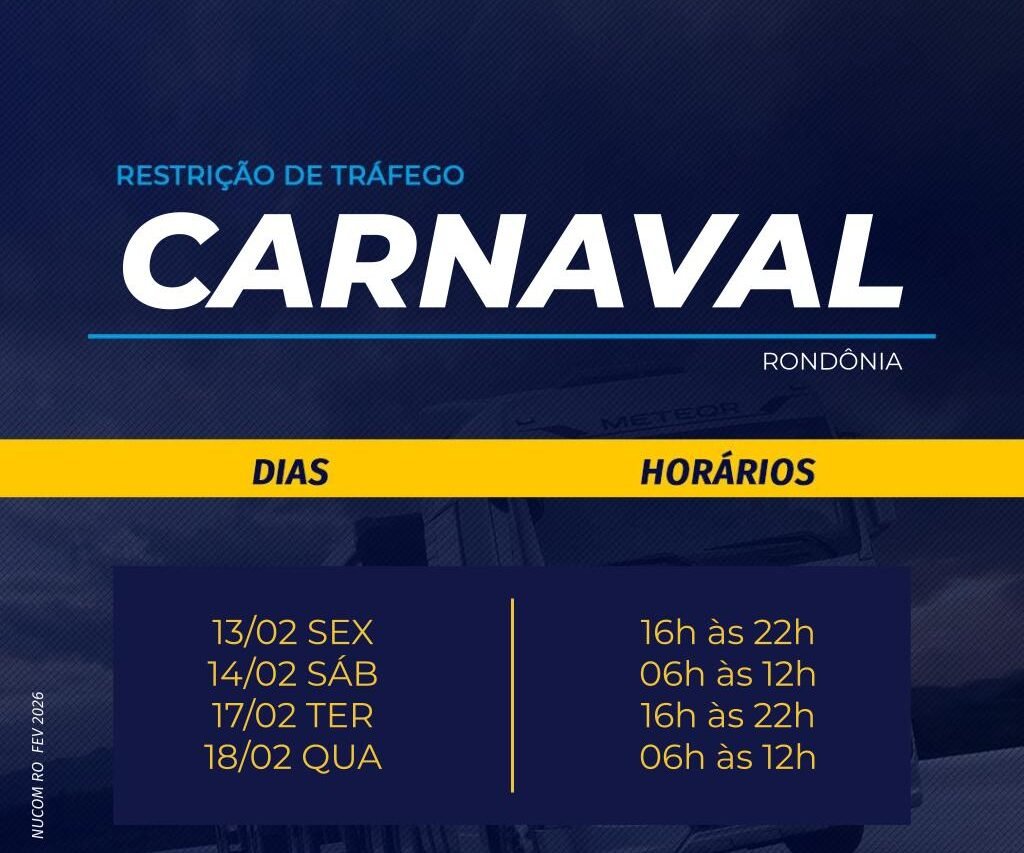 A Polícia Rodoviária Federal (PRF) divulgou um aviso de restrição de tráfego para veículos de carga durante o período de Carnaval em Rondônia, com o objetivo de reforçar a segurança nas rodovias federais e reduzir o risco de acidentes.