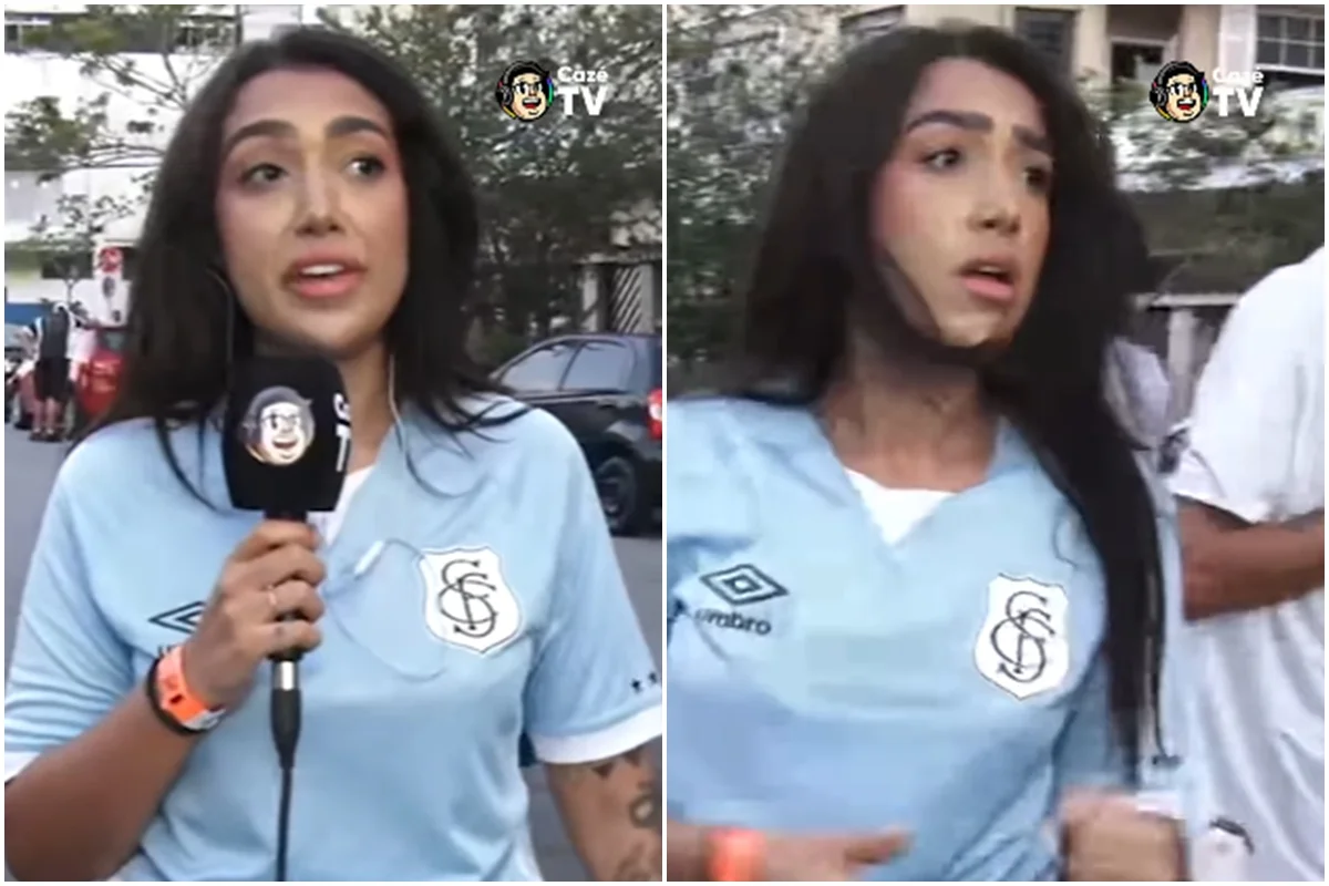 Aline Gomes, repórter da CazéTV, teve o microfone arrancado da mão de maneira violenta enquanto fazia a cobertura do jogo do Santos e Cruzeiro nos arredores da Vila Belmiro, no último domingo (7/12).