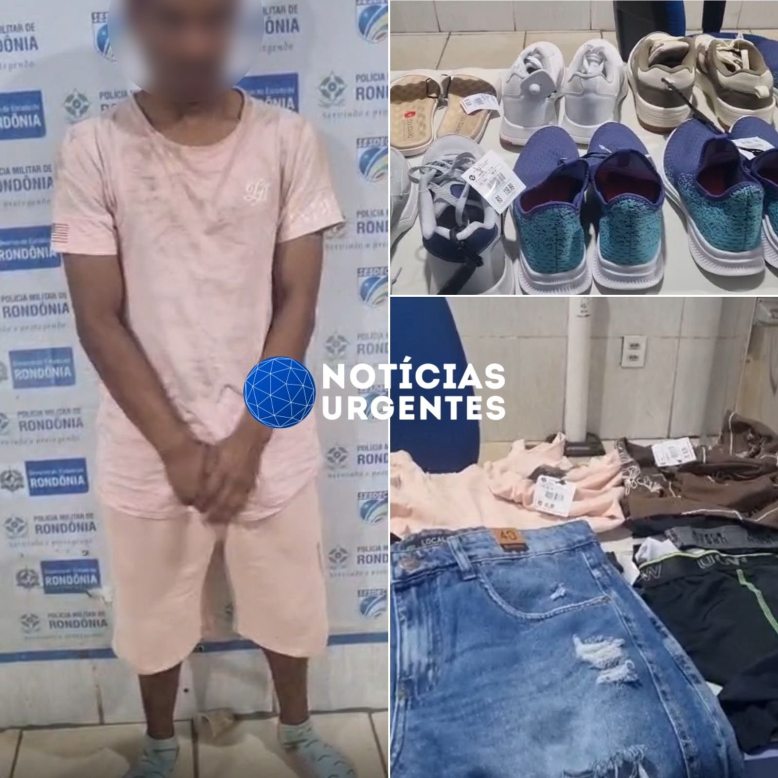 Um homem foi preso na manhã desta quinta-feira (1º) após invadir e furtar a loja Lojas Avenidas, localizada na Avenida Sete de Setembro, em Porto Velho. A prisão foi realizada por policiais militares, depois que o suspeito foi contido por funcionários do estabelecimento.