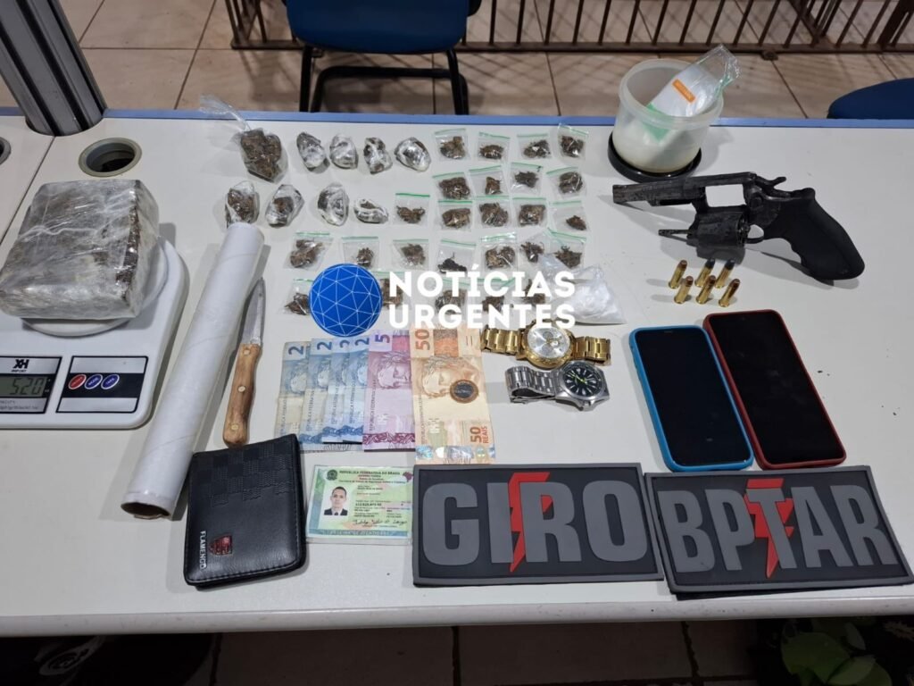 De acordo com informações apuradas pela equipe do Notícias Urgentes, no local também foram apreendidos um tablete de maconha, diversas porções da mesma substância, balança de precisão, dinheiro em espécie e materiais utilizados para embalar drogas, caracterizando o crime de tráfico de entorpecentes.