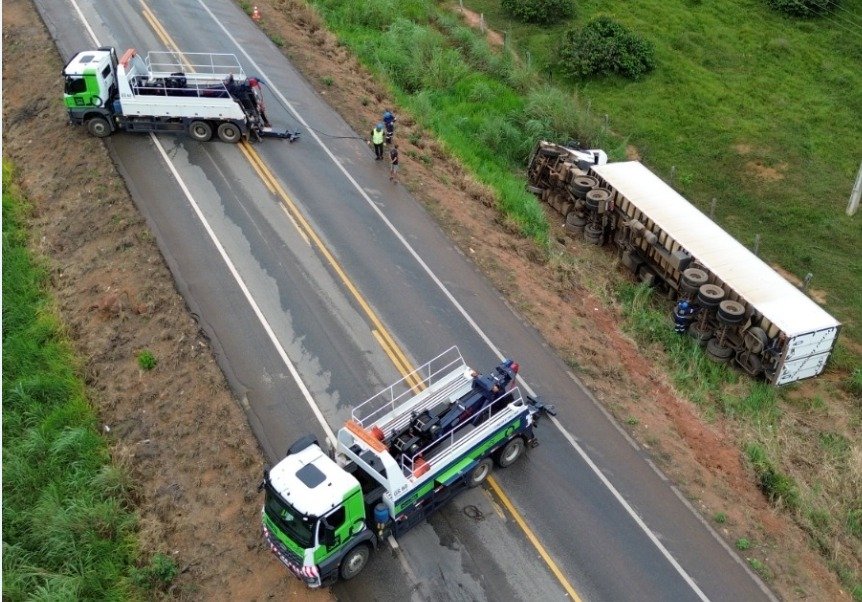O Centro de Controle Operacional (CCO) foi acionado para dar apoio a um caminhão frigorífico de seis eixos que saiu da pista e tombou no canteiro lateral da rodovia. Desde o primeiro momento, as equipes da concessionária atuaram conforme o protocolo operacional estabelecido para ocorrências desse tipo.