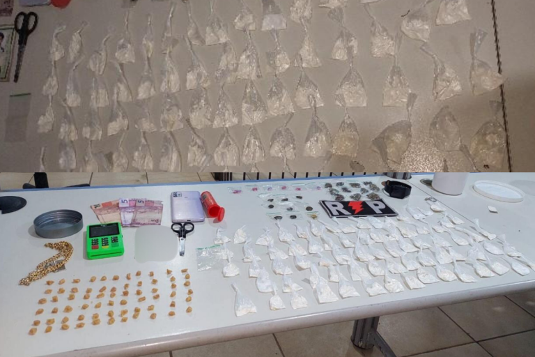 Após acompanhamento, o suspeito foi alcançado e abordado. Durante a busca pessoal, nada de ilícito foi encontrado com ele. No entanto, em diligências realizadas no interior do imóvel de onde havia saído, os policiais localizaram significativa quantidade de substâncias entorpecentes, já fracionadas e prontas para comercialização.