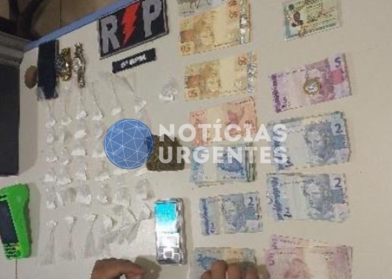 Durante a verificação no apartamento, também foi localizada uma porção grande de maconha, além de materiais usados no preparo e na venda de drogas, como balança de precisão, sacos para embalagem e uma máquina de cartão.