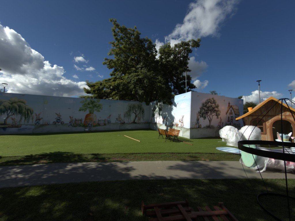 Espaço cenográfico da Fábrica de Chocolate c/distribuição de 1.000 caixas chocolate e foto impressa com personagens (16h às 22h)