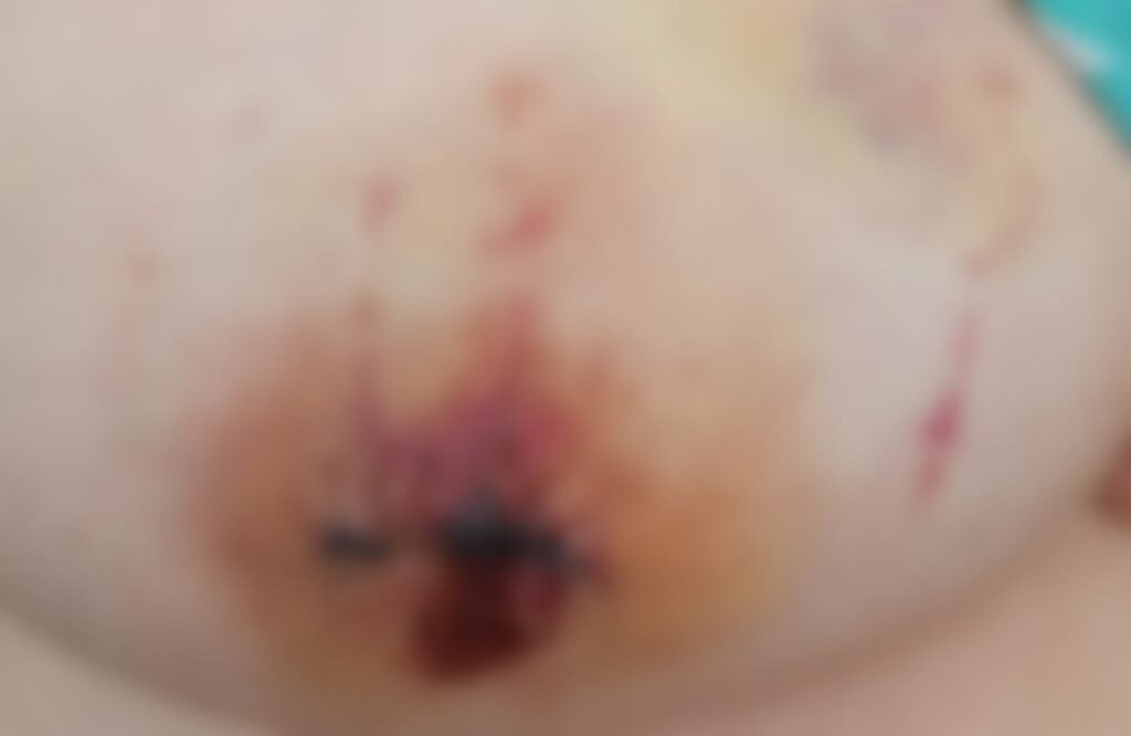 Segundo o relato, a vítima foi espancada e também sofreu mordidas. Em meio ao ataque, ela teve parte da orelha direita e do seio direito arrancados.