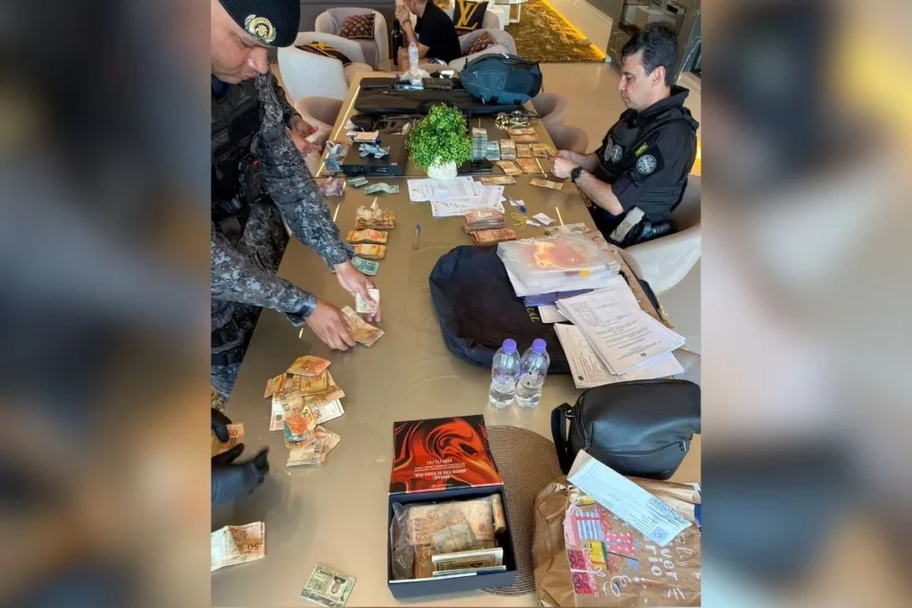 - A PF acredita que o volume financeiro pelo grupo criminoso ultrapassa R$ 260 bilhões. Além de armas, carrões e dinheiro em espécie, a corporação apreendeu documentos e equipamentos eletrônicos que ajudarão na investigação.