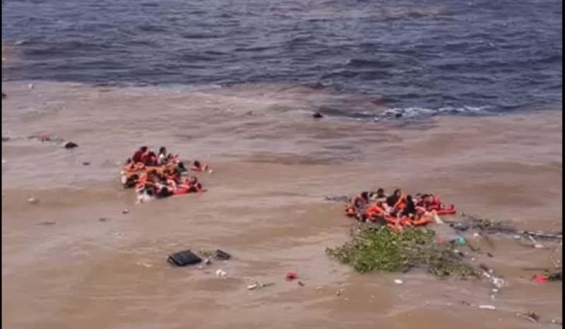 De acordo com testemunhas, havia dezenas de pessoas a bordo, entre elas mulheres, jovens e crianças. Imagens registradas por populares mostram passageiros usando coletes salva-vidas e permanecendo agrupados na água enquanto aguardavam socorro.