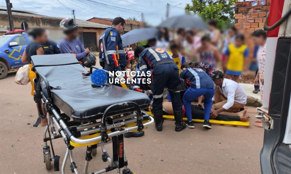 Duas crianças e um motociclista ficaram gravemente feridos no final da manhã desta quarta-feira (19), após serem atingidos por um Saveiro, na rua Quincas Borba com...