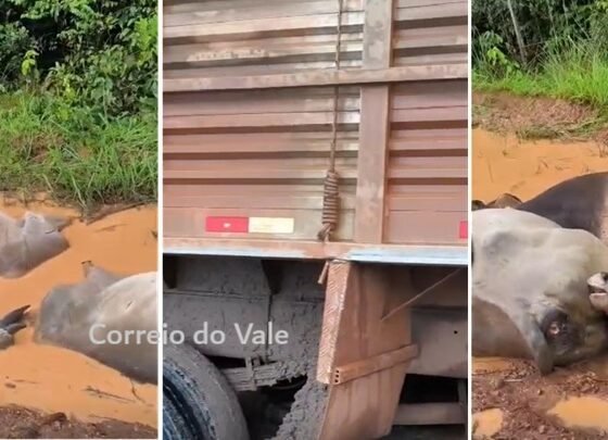 Um caminhão carregado de gado tombou na tarde desta terça-feira (10), na Linha 23-C, zona rural de Seringueiras (RO). Com...