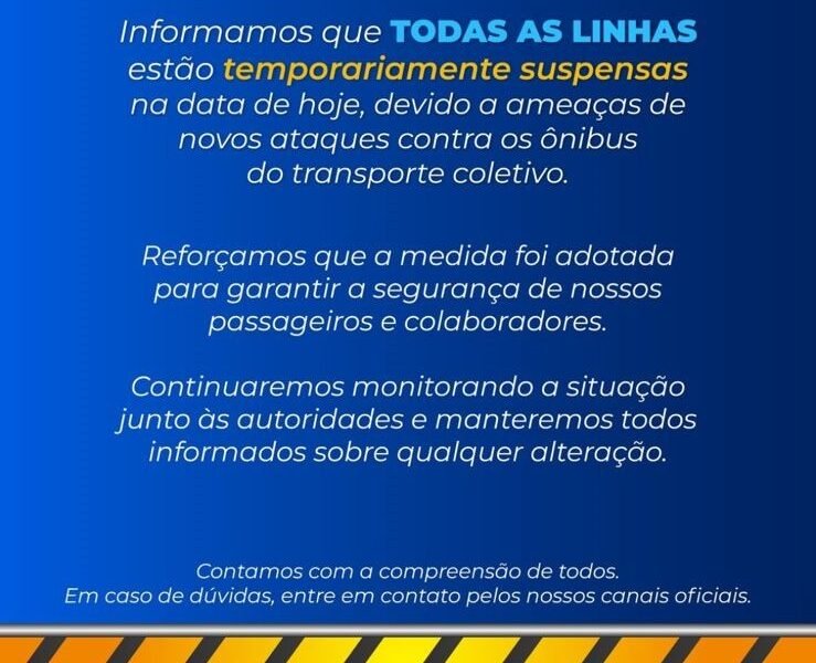 Todas as linhas de transporte coletivo foram suspensas nesta segunda-feira (13), após ameaças de ataque aos ônibus de Porto Velho. A informação foi confirmada por meio de...