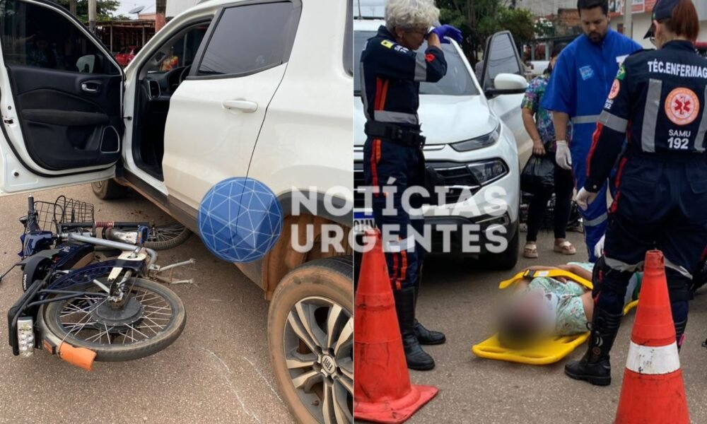 Jovem fica ferida após colisão entre bicicleta elétrica e caminhonete